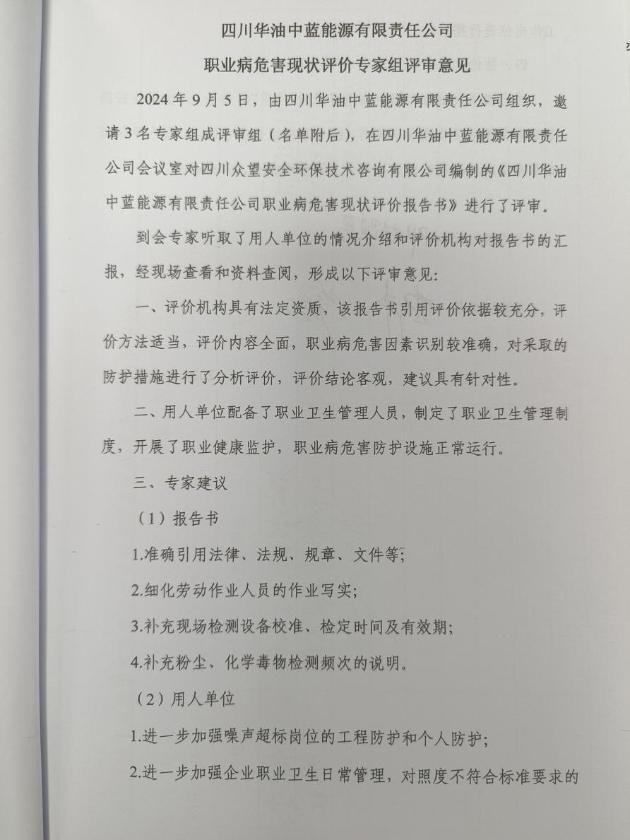 四川華油中藍(lán)能源有限責(zé)任公司職業(yè)病危害現(xiàn)狀評價 |