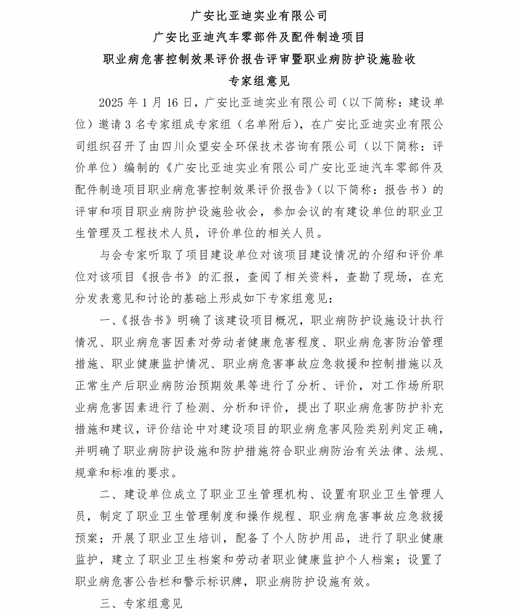 廣安比亞迪汽車零部件及配件制造項目 |