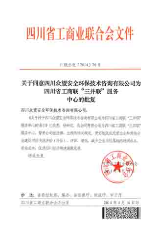 四川省工商聯(lián)批復(fù):四川眾望安全環(huán)保技術(shù)咨詢有限公司為“四川省 三并聯(lián) 服務(wù)中心”,更好地促成企業(yè)建設(shè)項(xiàng)目快速評(píng)價(jià)(評(píng)估)、評(píng)審、審批?。?!