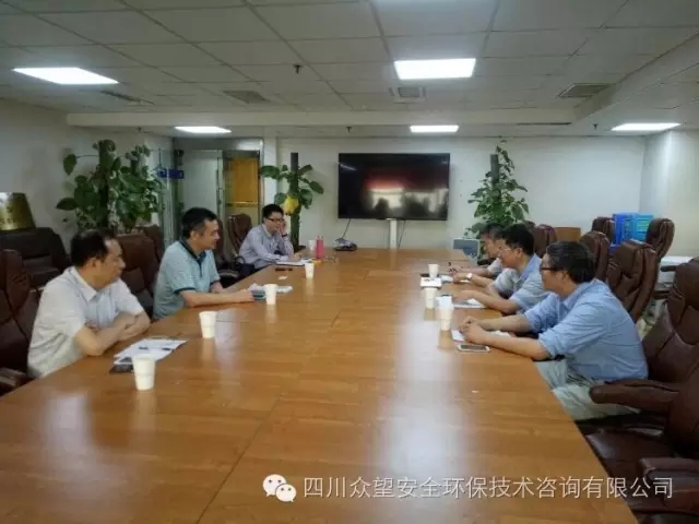 2016年9月7日,四川省輕工業(yè)設(shè)計院院長黃明剛,副院長陳勇,總工程師陳小平一行三人到四川省眾望安全環(huán)保技術(shù)咨詢有限公司參觀考察,隨后與四川眾望公司總經(jīng)理潘祖高,副總經(jīng)理朱子剛、張宏、李圣興等親切交談,共商深度合作事宜。